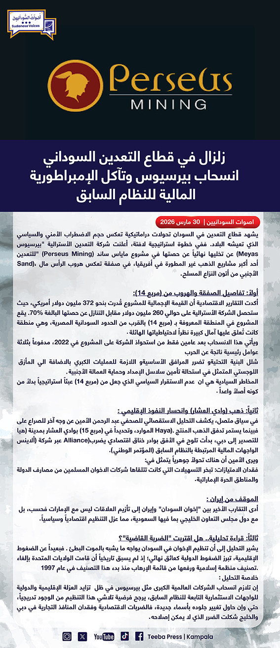 زلزال في قطاع التعدين السوداني.. انسحاب بيرسيوس وتآكل الإمبراطورية المالية للنظام السابق